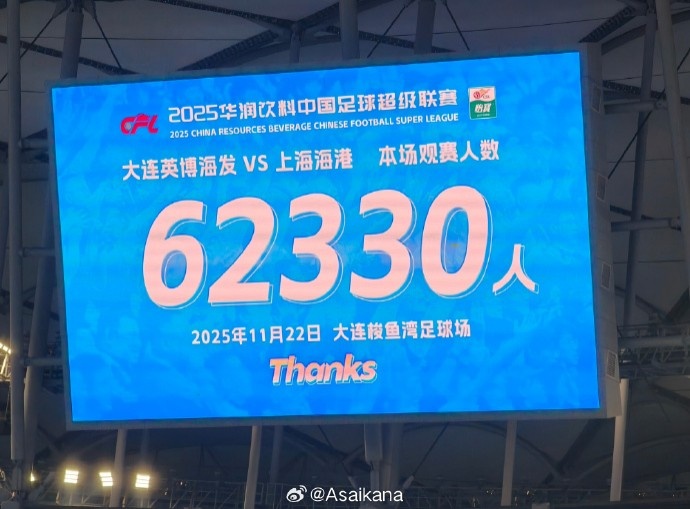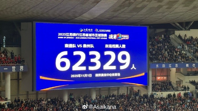 今年度职业联赛最高不雅世东谈主数为中超收官战大连英博vs上海海港的62330东谈主,而业余联赛最高不雅世东谈主数为苏超决赛南通队vs泰州队的62329东谈主,碰巧收支1东谈主。