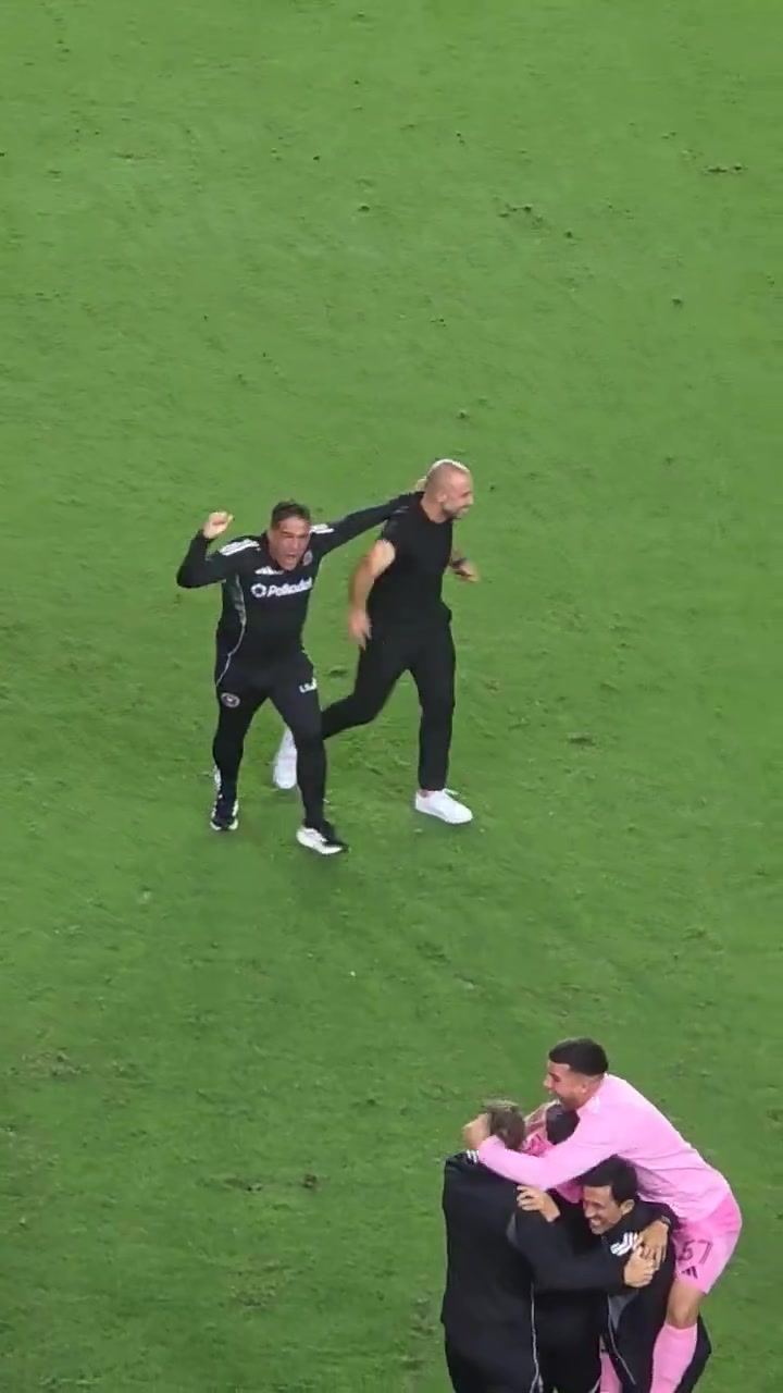 比赛规定后,马斯切拉诺抱着教练团队庆祝,随后挥拳咆哮。