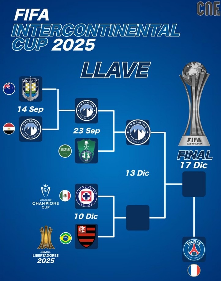 2025年洲际杯赛程随之公布,其中巴黎平直晋级决赛。弗拉门戈将代表南好意思洲足联出战,对阵墨西哥的蓝十字。两者间的胜者将对阵埃及的金字塔队,最终胜者将在12月17日与巴黎争夺冠军。