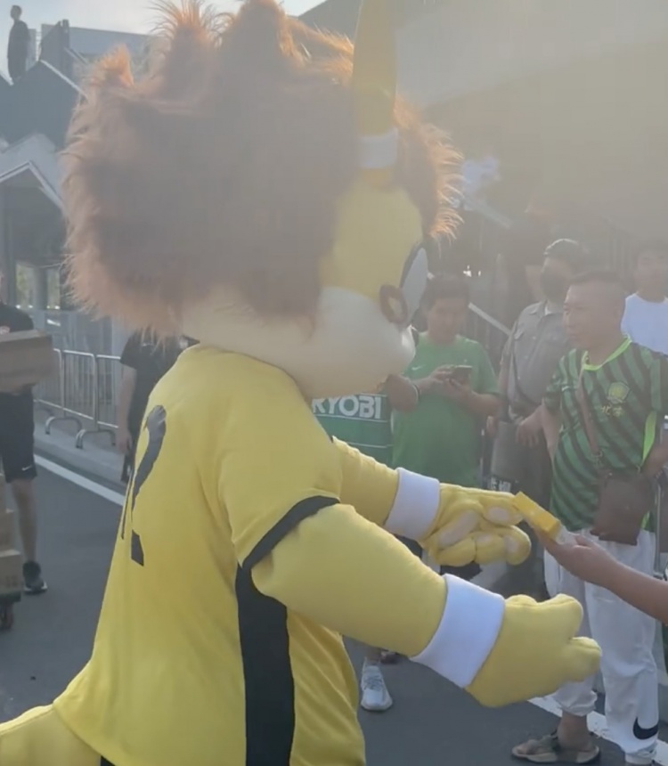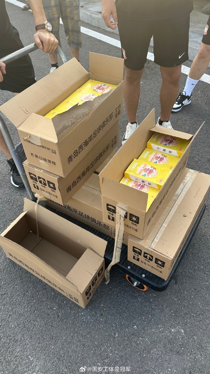 其乐融融!青岛西海岸吉利物赛前为国安远征球迷奉上雪糕