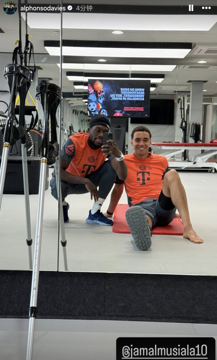 阿方索-戴维斯社媒晒与穆西亚拉康复磨真金不怕火照,两东谈主康复推崇积极