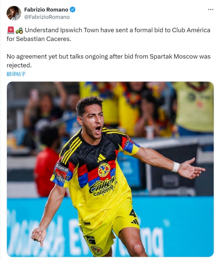 罗马诺线路,伊普斯维奇对服从于墨西哥好意思洲的乌拉圭中卫卡塞雷斯感好奇,依然向墨西哥好意思洲提交厚爱报价。