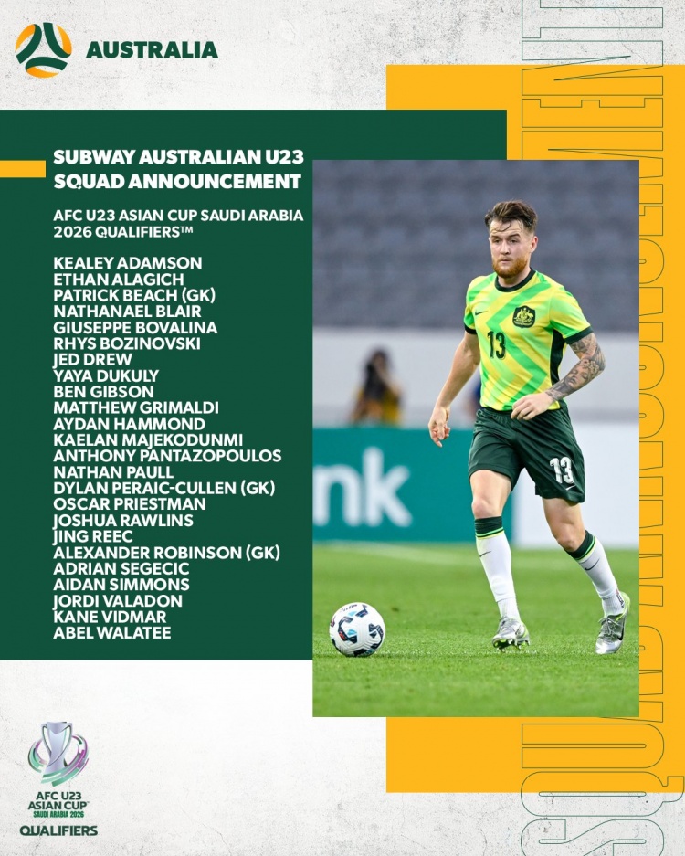 北青:澳大利亚U22队24东谈主名单有4东谈主旅欧,澳超金靴值得要点详确