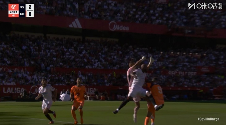 > 巨流冲了龙王庙!塞维门将出击打翻自家中卫,后者暂去场边休息