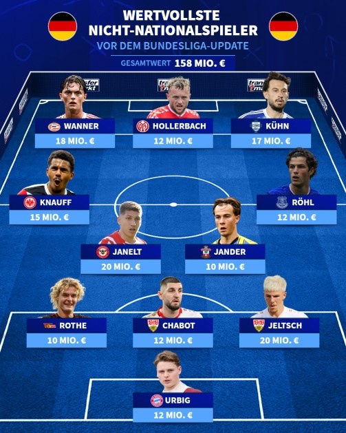 前卫:万纳尔(埃因霍温,1800万欧)、霍勒巴赫(好意思因茨,1200万欧)、尼古拉斯-库恩(科莫,1700万欧)