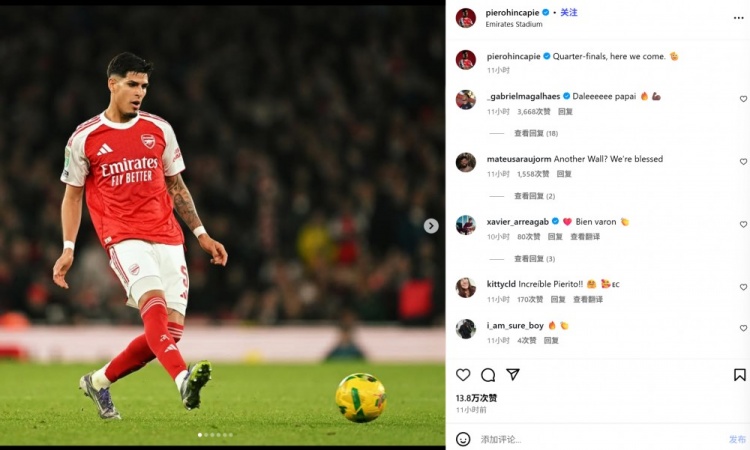 他也在赛后通过社媒晒出我方的比赛照并配文:“八强战,咱们来了!”队友加布里埃尔也现身挑剔区饱读动谈:“加油!”