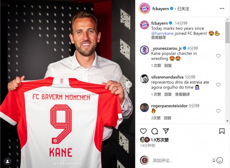 2023年8月12日,凯恩以9500万欧转会费从热刺加盟拜仁。拜仁官方社媒晒出凯恩加盟时的像片,总结阿谁额外的技巧。