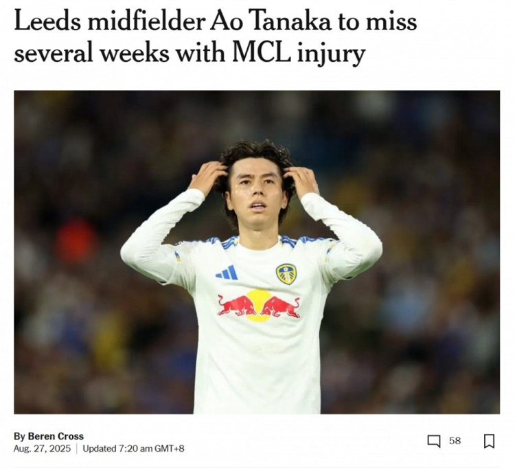 8月28日讯 TA报说念,利兹联中场田中碧因内侧副韧带受伤,将伤缺数周技艺。