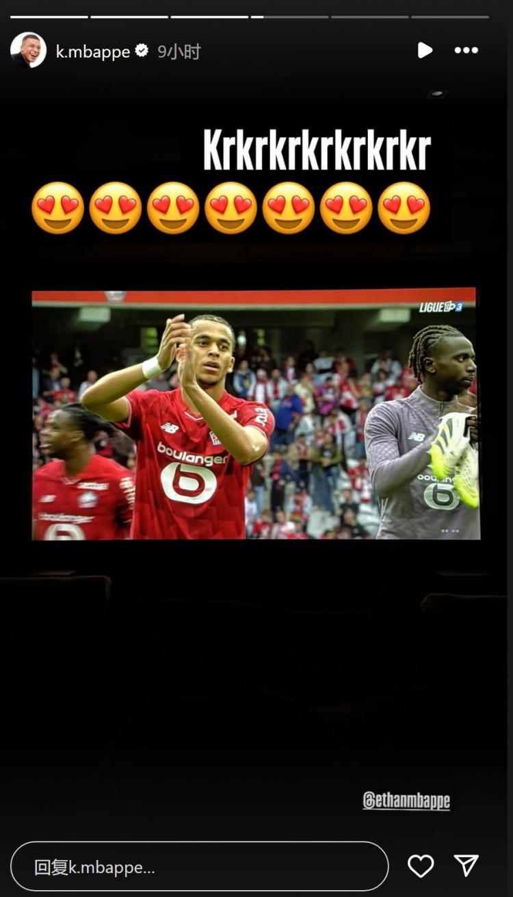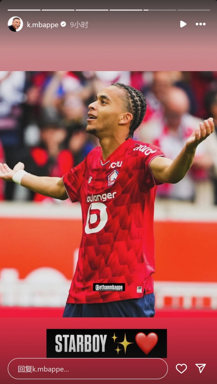 这亦然伊桑-姆巴佩处事生计的处子球,姆巴佩社媒晒出伊桑-姆巴佩的相片,对弟弟示意祝福,配文:“新星!”