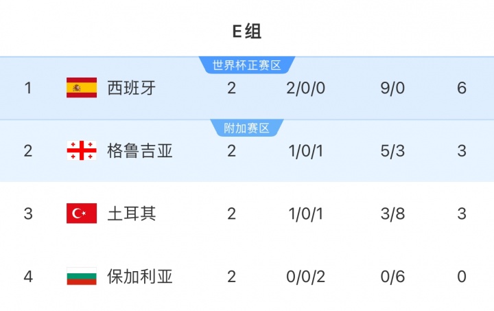 西班牙国度队将于10月中旬活着初赛中对阵格鲁吉亚和保加利亚,当今西班牙积6分位列E组第一,独特格鲁吉亚3分。