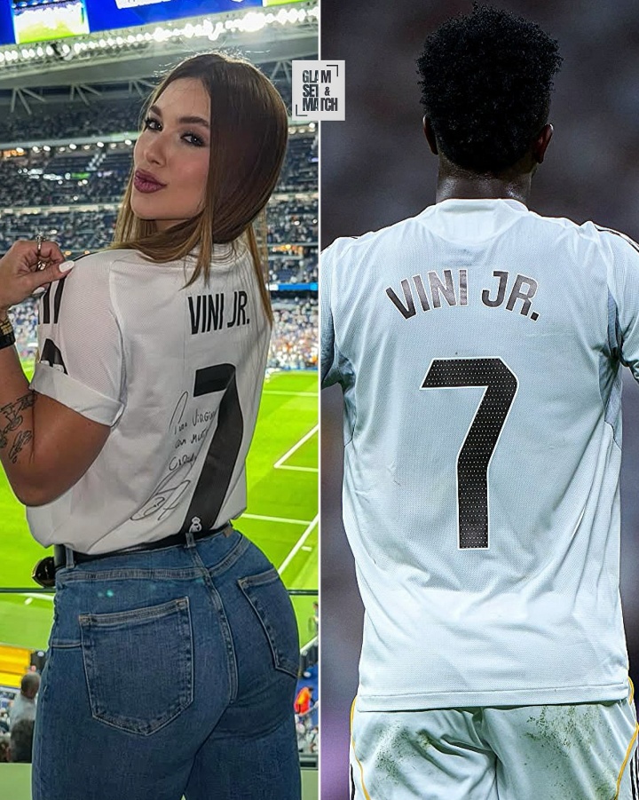 她秀出了我方穿皇马球衣的像片,并晒出维尼修斯的7号以及球衣上的亲笔签名。