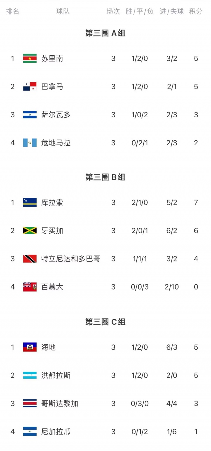 把柄中北好意思的出线规则,3个小组的第别称与人好意思加墨一齐纵贯寰球杯,两支获利最佳的的次名得到跨洲附加赛阅历,这是中北好意思及加勒比初次领有多达8支球队插足寰球杯。