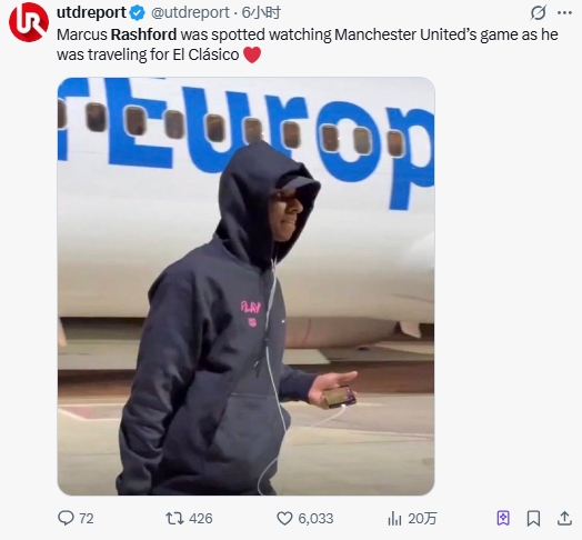 👀心系老东家?拉什福德下飞机被拍到在看球,球迷以为是看曼联