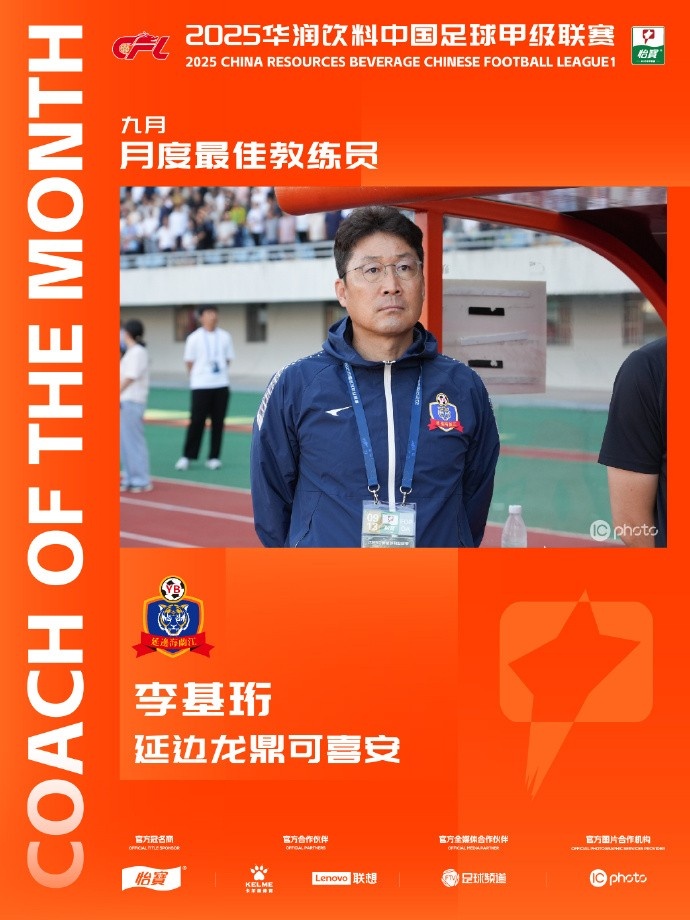 10月31日讯 延边龙鼎主帅李基珩当选为了中甲联赛9月最好赞助。