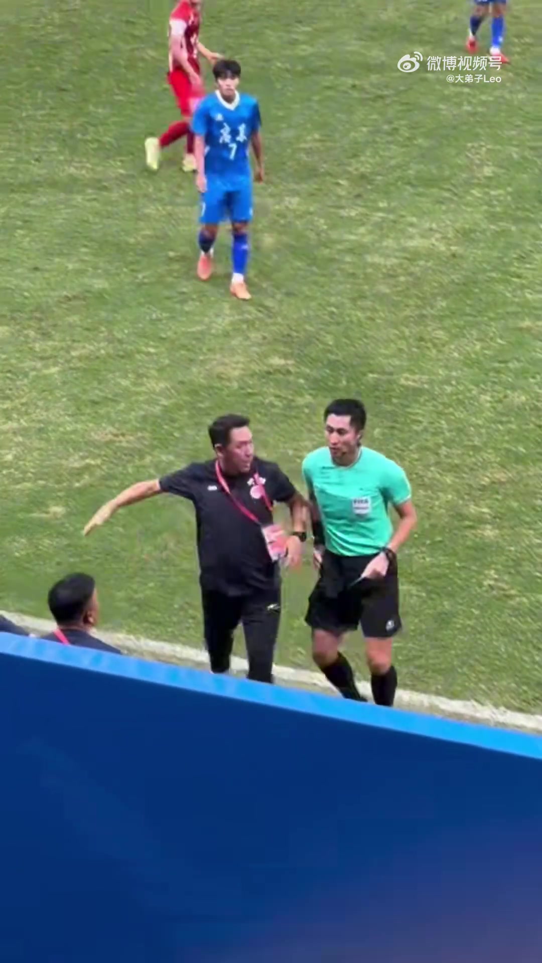 现场实拍视频知道,马宁准备向云南队替补席的东谈主员出示黄牌,随后见到被出示黄牌的东谈主员陆续抗议裁判,马上跑到场边。云南队主讲明立即试图拉住马宁,但马宁最终也曾出示红牌将云南替补席上的职责主谈主员红牌罚下。