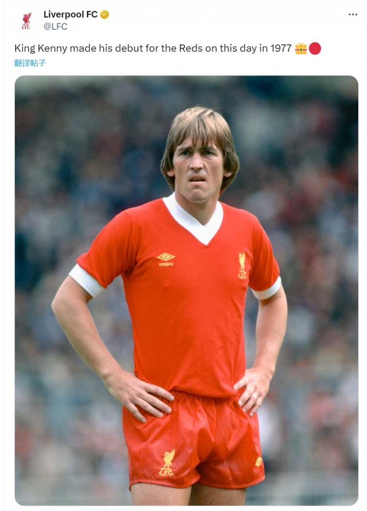 听说!达格利什赤军首秀48周年,利物浦官方社媒致意