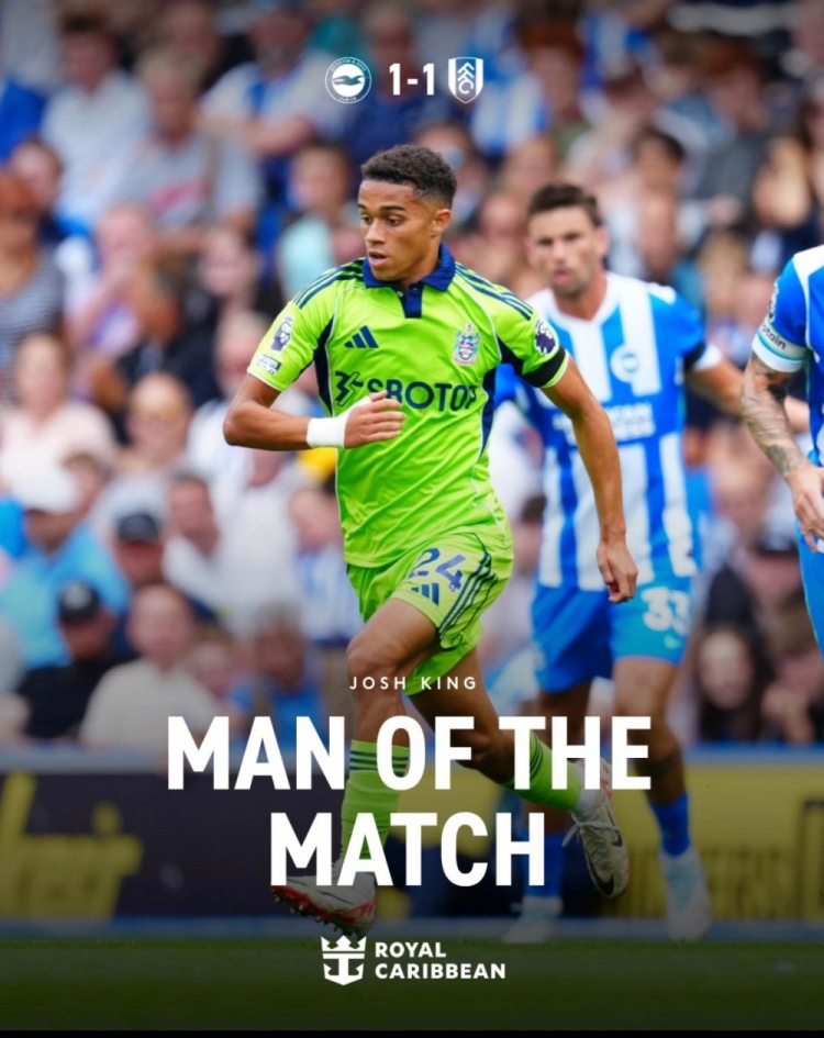 本场比赛富勒姆中场约书亚-金首发登场证据不俗,孝敬1次重要传球,3次抢断,1次射正,他也当选了富勒姆官方评比出的本场比赛队内最好球员。