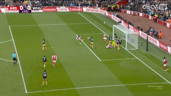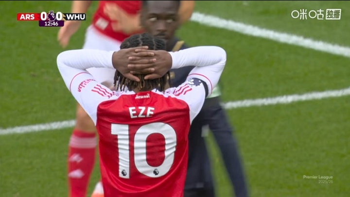 10月04日讯 英超第7轮,阿森纳vs西汉姆联。比赛第13分钟,埃泽濒临半佛门凌空踢飞,枪手错失良机。