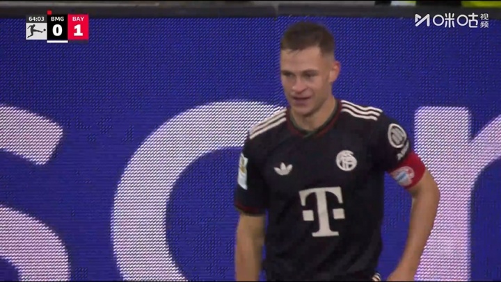10月25日讯 德甲第8轮,拜仁客战门兴,第64分钟基米希门前两连击破门,拜仁客场1-0跨越门兴。