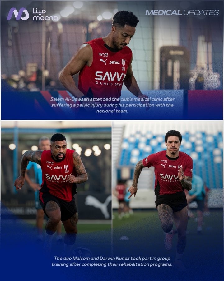 努涅斯和马尔科姆仍是康复,至当天慎重总结插足利雅得月牙的合练