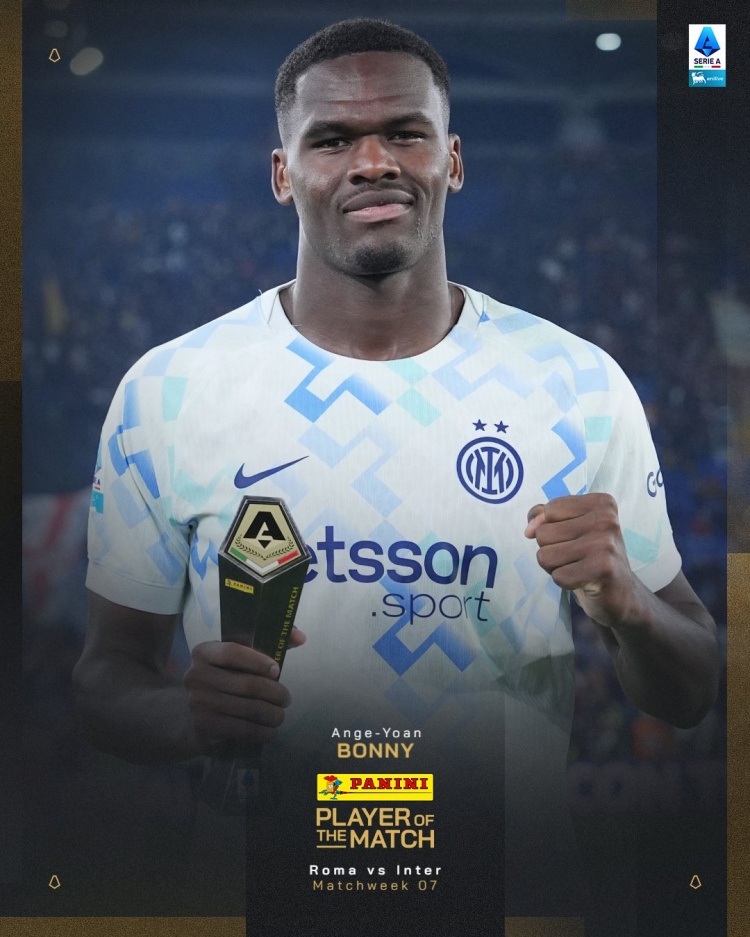 意甲第7轮比赛,博尼攻入全场惟一进球,匡助国米客场1-0打败罗马。
