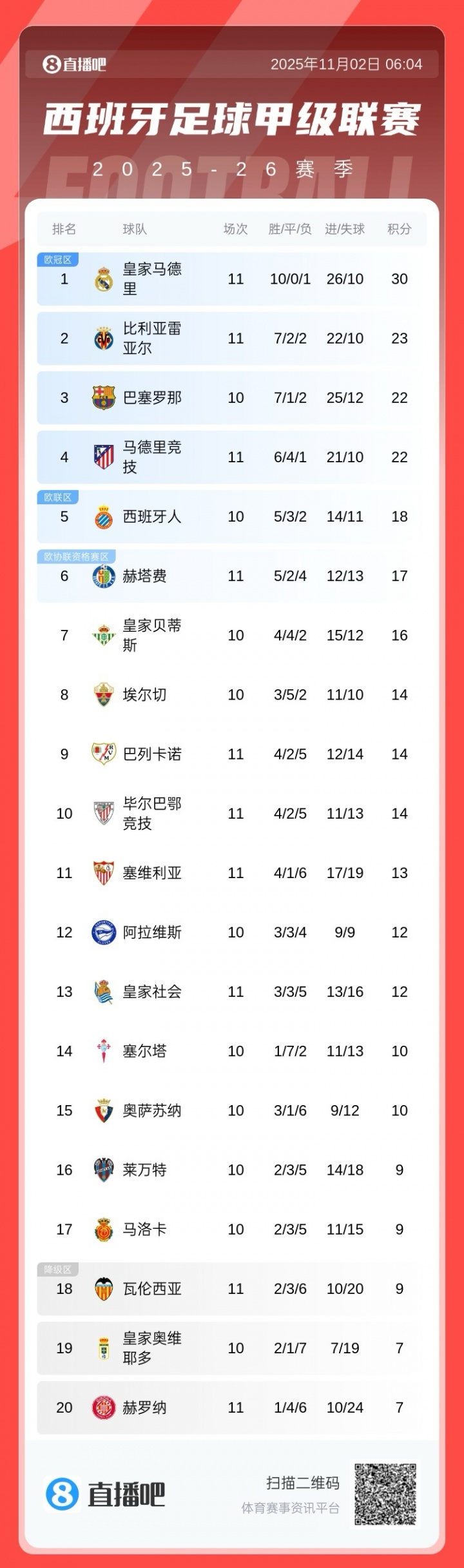 11月02日讯 西甲第11轮,皇家马德里主场4-0大捷瓦伦西亚,赢得西甲4连胜,暂时7分上风排行西甲第一。