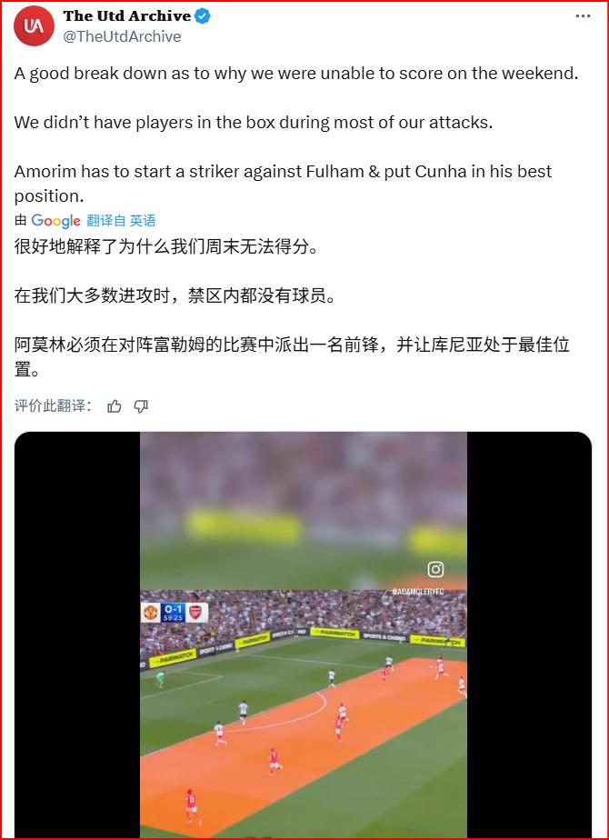两场比赛的差距在那处?你靠近上赛季英超防护最佳的阿森纳,你能够压着阿森纳打,得回22脚射门,距离进球一线之隔;你靠近上赛季英超中游的富勒姆,你被富勒姆压着打,富勒姆很缺憾我方莫得得回比赛的告捷,这即是诀别。我可以负累赘的告诉你,两场比赛曼联的战略体系是相通的,那么问题出当今那处?抛本旨绪,我们详实聊一聊: