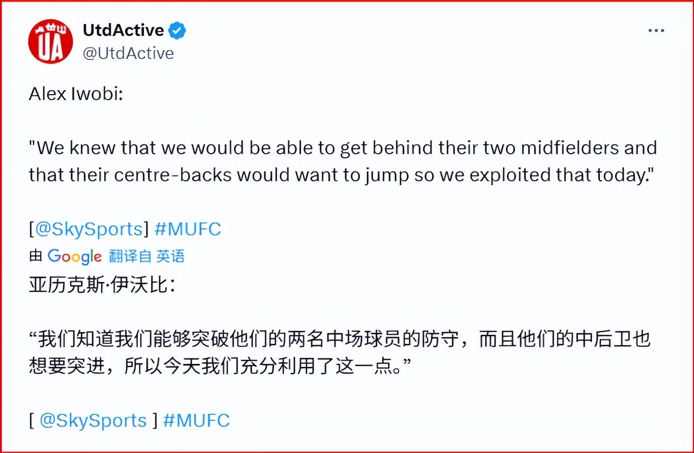 这个问题不是我一个东说念主在谈,外洋不少博主也在谈。曼联惟有鼓励到进犯三区的时候,姆贝乌莫才会干涉禁区,况兼还不是在中路。当你莫得中锋去牵制2个中后卫的时候,敌手的中后卫天然可以分出密致力去盯死姆贝乌莫,致使中后卫可以压出来,归正你也没东说念主应用中后卫的死后空间。