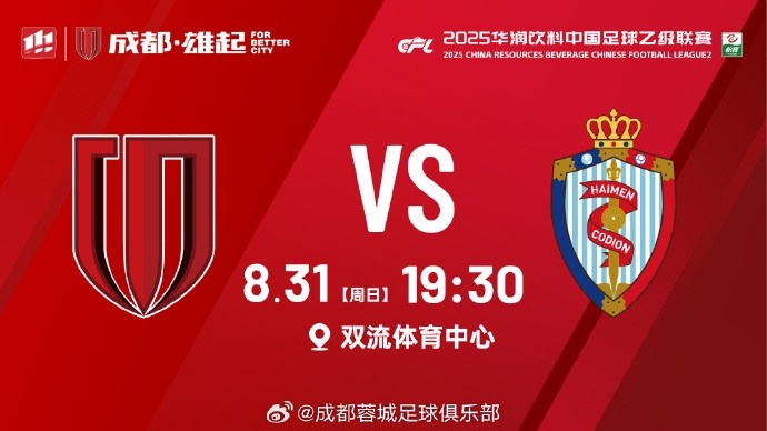比赛日 中乙第24轮 成齐蓉城B队vs海门珂缔缘 8月31日 19:30