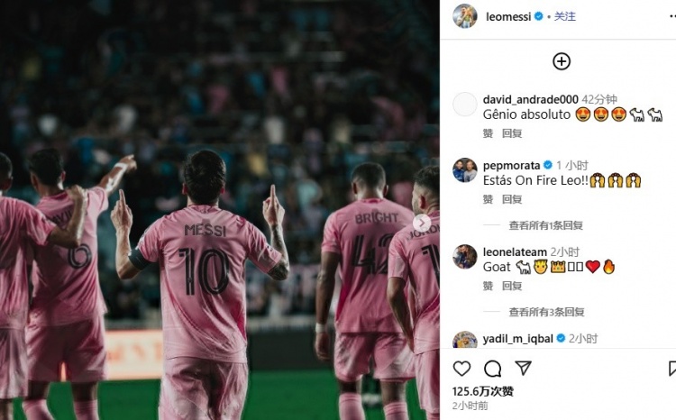 发布两小时获赞超百万!梅西2射1传总揽比赛,赛后社媒晒图